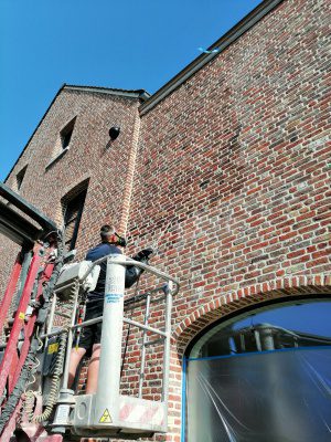 - Let op bij de behandeling van gevels die plaatselijk weinig poreuze of niet-poreuze materialen bevatten, zoals vb arduin, marmer, geëmailleerde baksteen, kan vlekvorming veroorzaken. Om dit te vermijden dienen deze oppervlakken beschermd te worden tegen indringing van het product. Dit kan o.a. door deze vooraf te verzadigen met white-spirit. Indien toch product terechtgekomen is op deze oppervlakken, moeten deze, vooraleer het product opgedroogd is, met een in white-spirit gedrenkte doek gereinigd worden.
