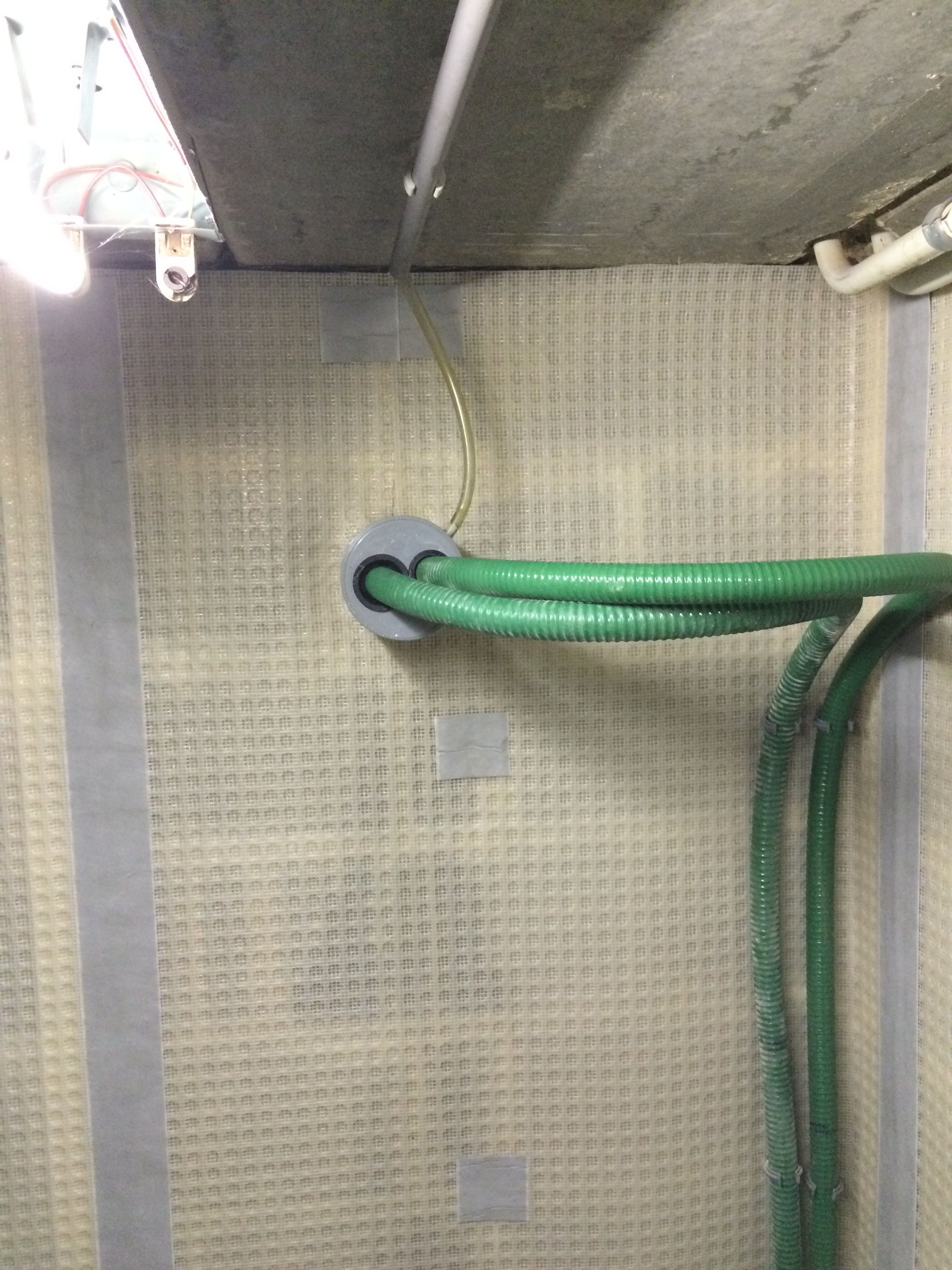 - plaats de geperforeerde pompput op het diepste punt ( best een paar centimeter in de vloer inkappen om zoveel mogelijk water te collecteren, dit is beter voor de pomp)